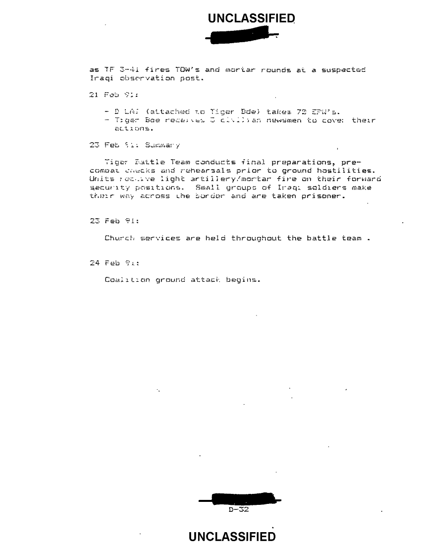 Subject = ANNEX D TIGER BRIGADE CHRONOLOGY TABLE OF CONTENTS