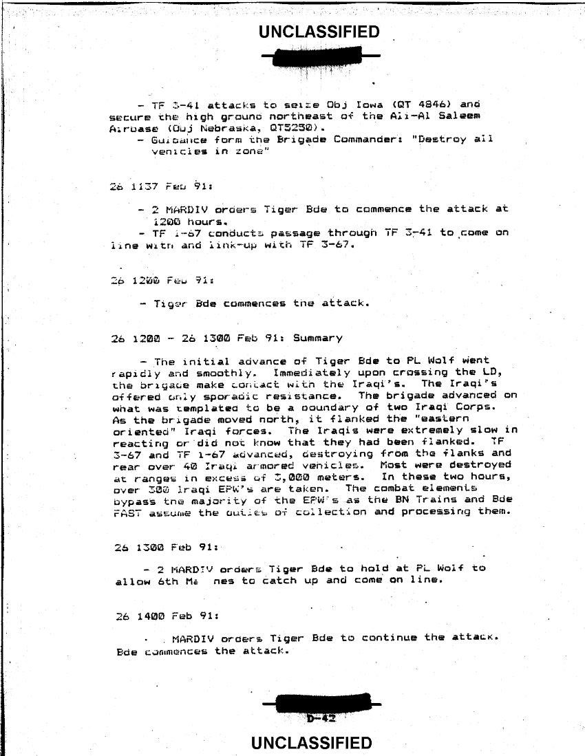 Subject = ANNEX D TIGER BRIGADE CHRONOLOGY TABLE OF CONTENTS