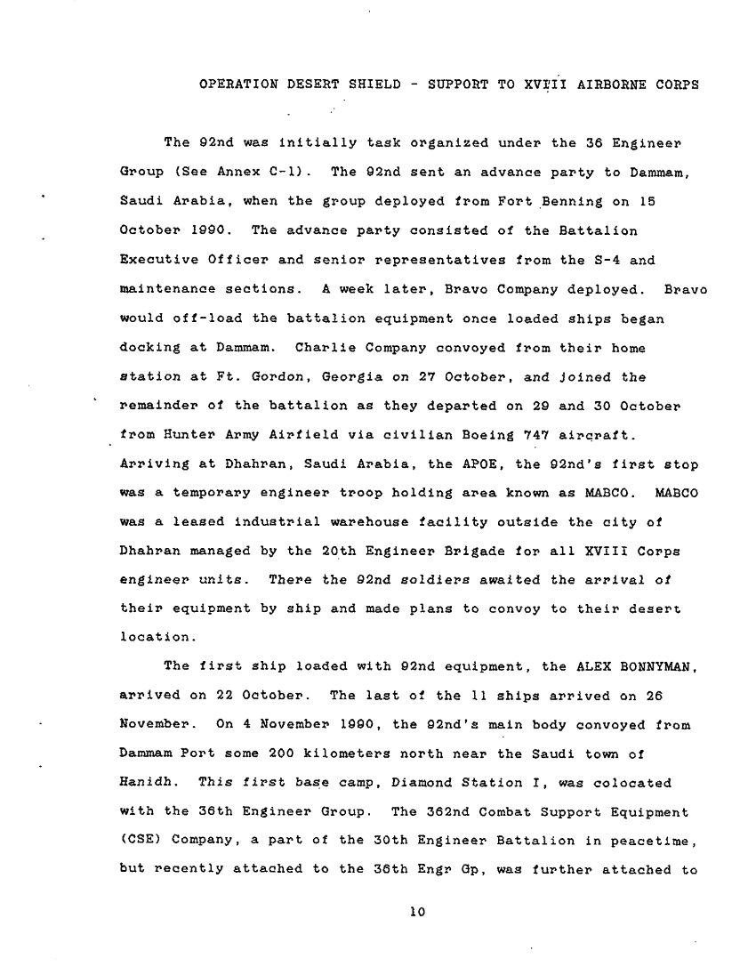 Subject = 92ND ENGR CBT BN HVY UNIT HISTORY