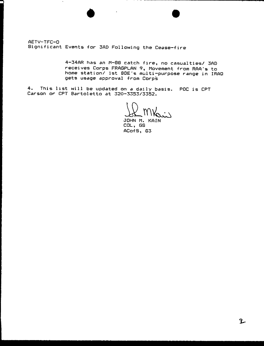 Document 3 f:/Week-48/BX000531/LOD AND REPORT 4-5 APR 91/significant events for 3ad following the cease fire:01289718515611