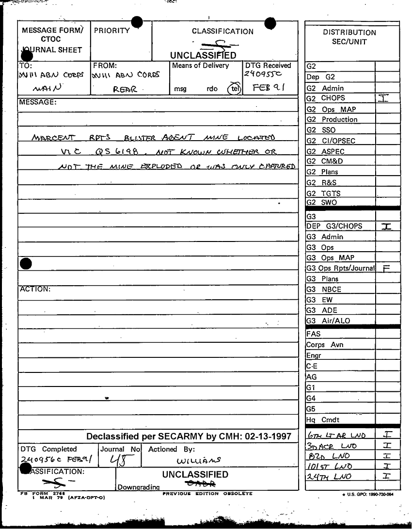 Document 1 f:/Week-48/BX000079/DAILY JOURNAL-STAFF JOURNAL AND TACTICAL OPNS CTR LOGS-24 FEB 91/message form jouirnal sheeet 24 feb 91:03069709495415