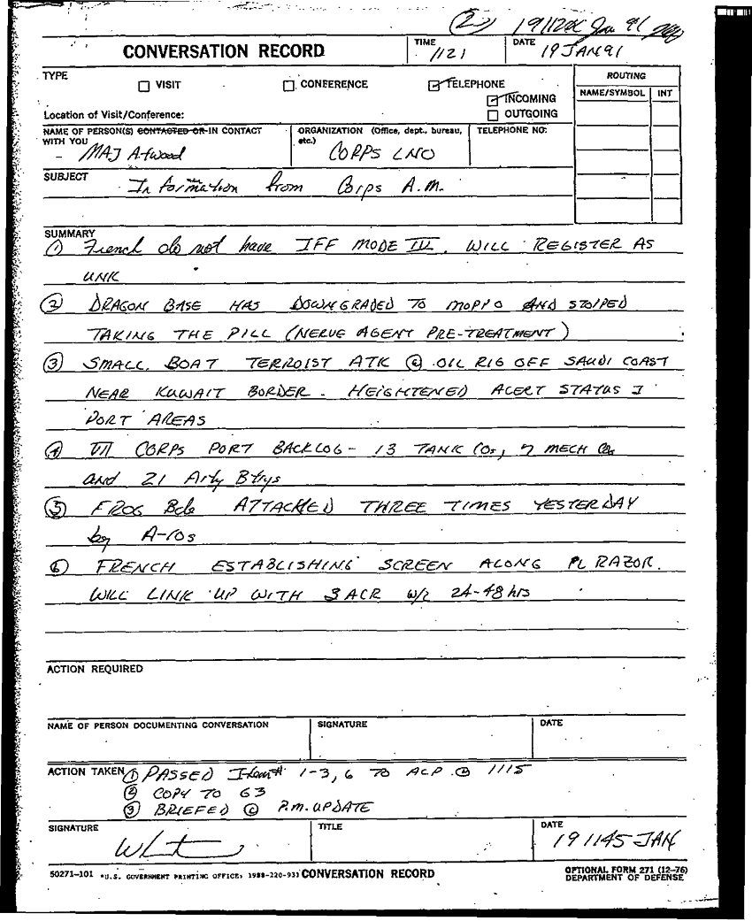 Document 1 f:/Week-48/BX001611/DS-S G3 OPS D REAR DUTY LOGS-1/information from corps am:03069709500121