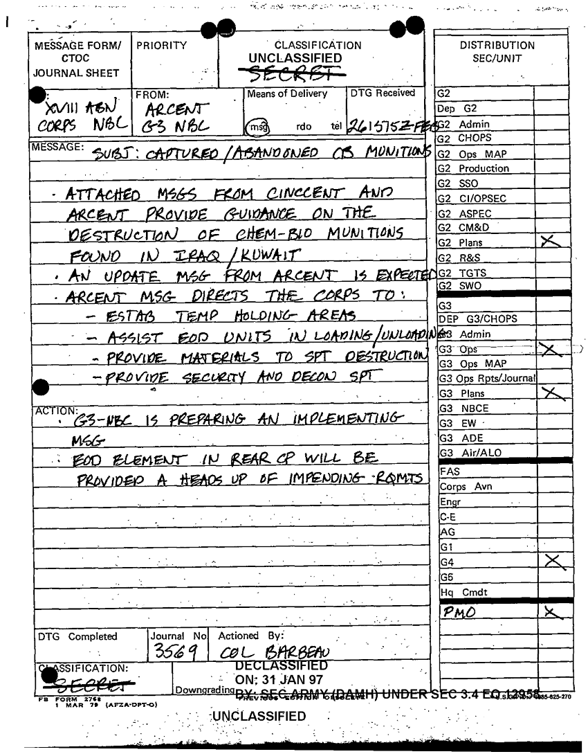 Document 6 f:/Week-48/BX000079/DAILY JOURNAL-STAFF JOURNAL AND TACTICAL OPNS CTR LOGS-26 FEB 91-2/captured abandoned os munitions 26 feb:03069709501635