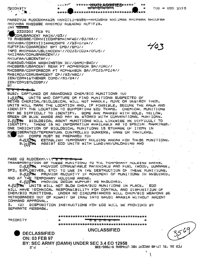 Document 6 f:/Week-48/BX000079/DAILY JOURNAL-STAFF JOURNAL AND TACTICAL OPNS CTR LOGS-26 FEB 91-2/captured abandoned os munitions 26 feb:03069709501635