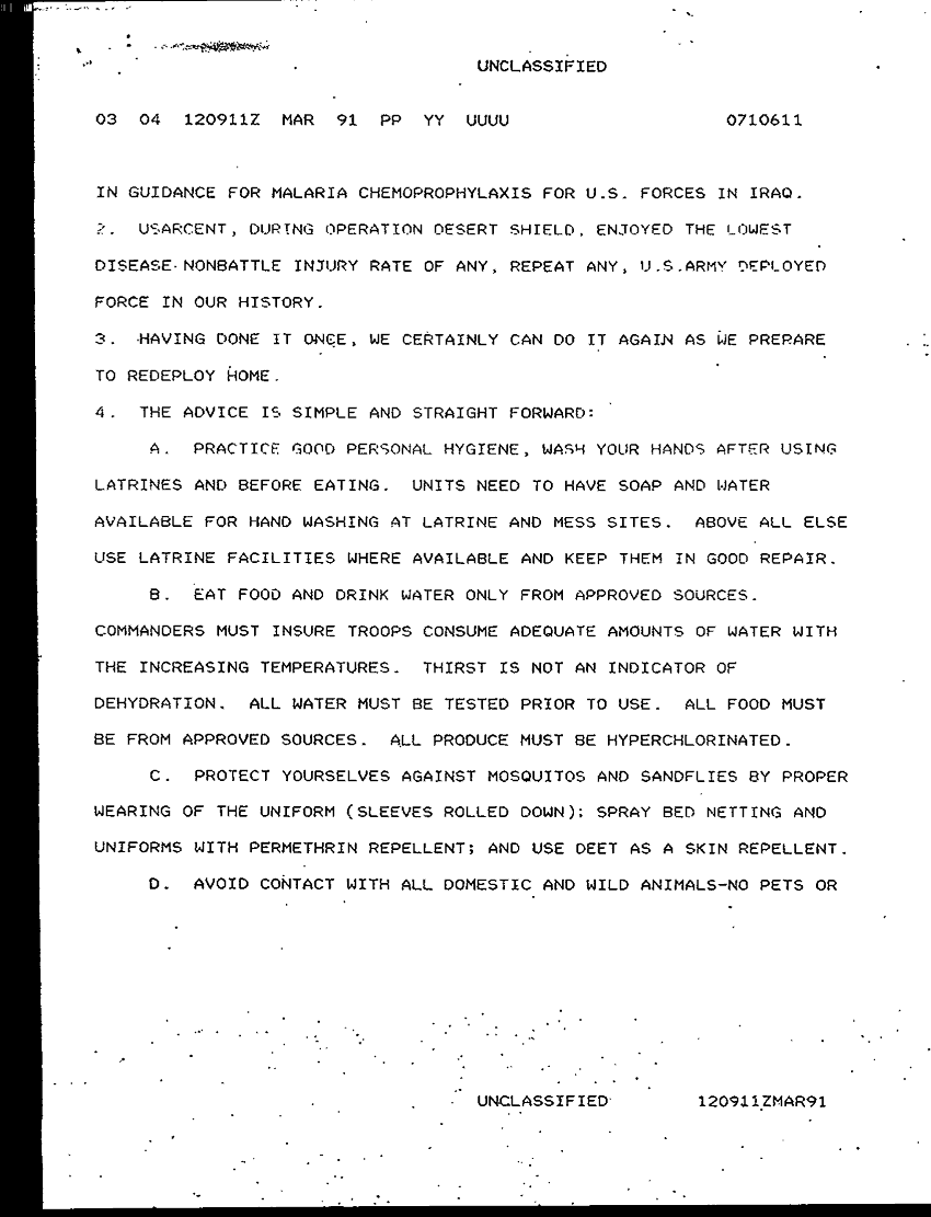 Document 4 f:/Week-48/BX005606/10TH MASH GEN MED SVC CORRESPONDENCE FILES/msg 12 mar 91 getting home healthy:0306970949434