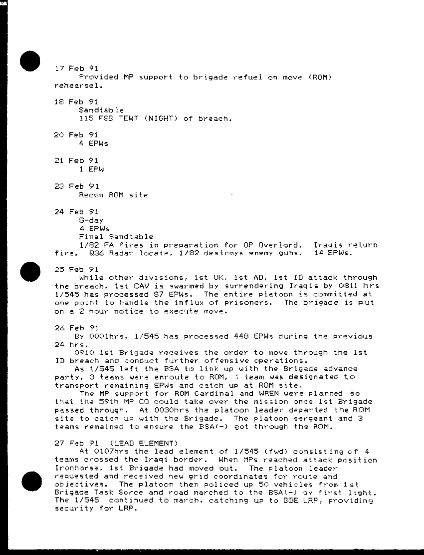 Document 14 f:/Week-49/BX001114/DESERT SHIELD AND DESERT STORM NOTES-BRIEFS-MEMOS/545th mp co alerted for deployment to soutwest asia:03069709502442