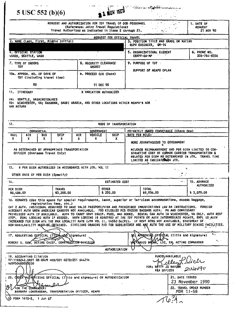 Document 5 f:/Week-60/BX003001/GULF WAR TDY RECORDS BRANDT-WIERSMA/foreign allowances application grant and report:0407971057352