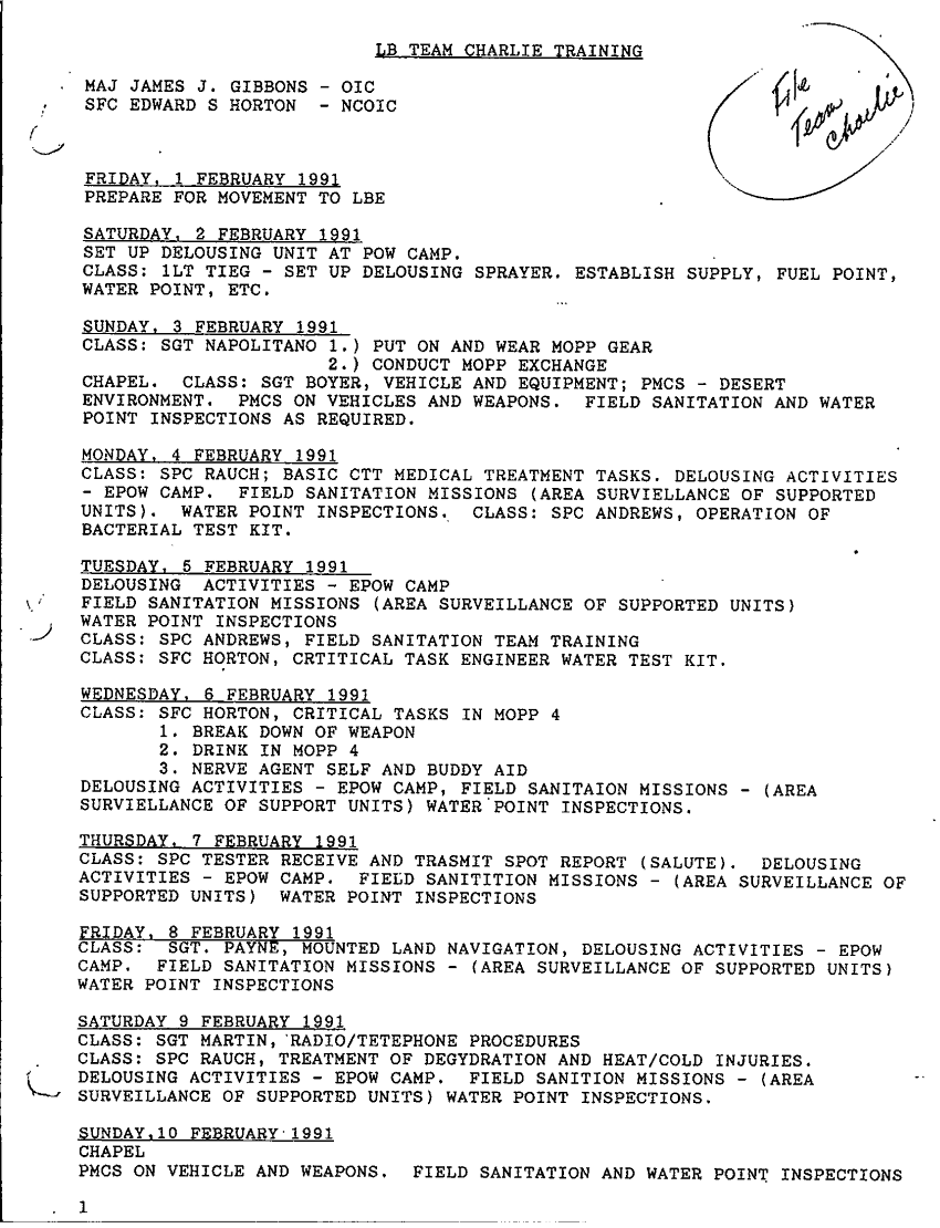 Document 2 f:/Week-60/BX000284/14TH PREVENTIVE MED E AND E PLAN 23 JAN 91/lb team charly traning:04239710042616