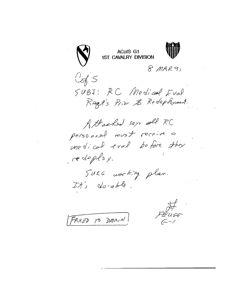 Subject = RC MEDICAL EVAL REGTS PRIOR TO REDEPLOYMENT
