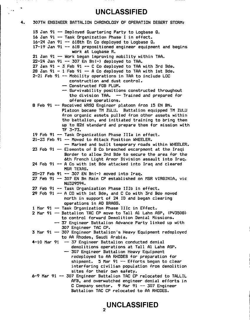 Subject = 307TH ENGINEER BATTALION DESERT STORM NARRATIVE 3 JUN 91
