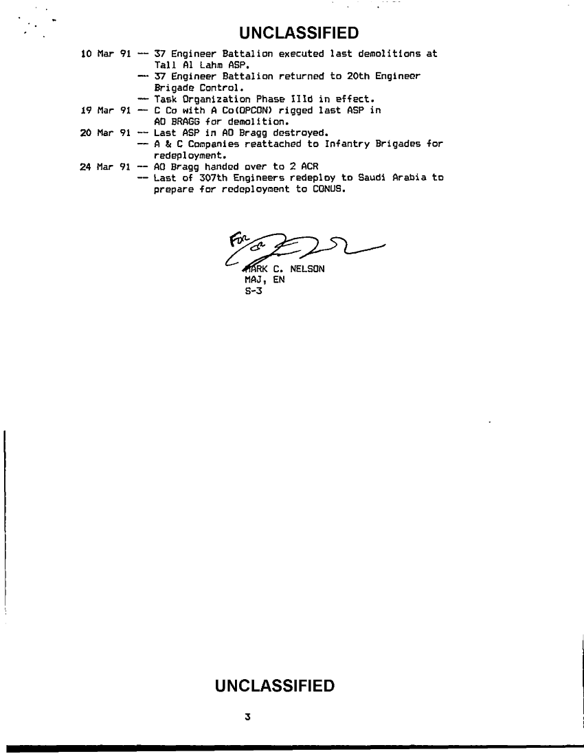 Subject = 307TH ENGINEER BATTALION DESERT STORM NARRATIVE 3 JUN 91