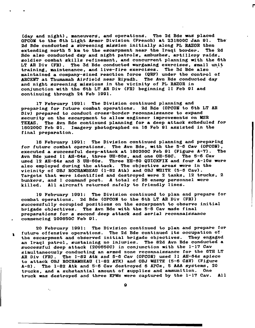 Document 96 f:/Week-22/BX001509/82D ABN DIVISION OPERATION DES RT SHEILD AND DESERT STORM COMMAND REPORT/command report narrative:04189716374810