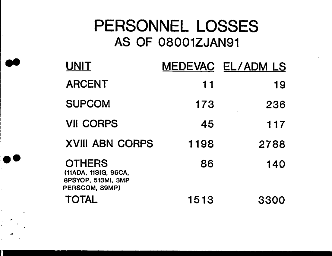Subject = ARCENT WIDE LOSSES 8 JAN 91