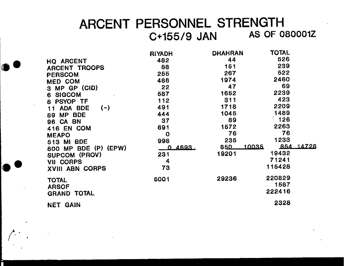 Subject = ARCENT WIDE LOSSES 9 JAN 91