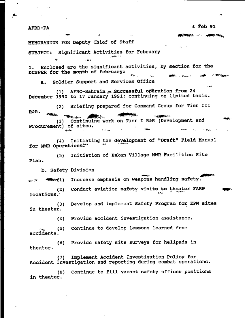 Document 4 f:/Week-28/BX000411/COMMAND REPORTS-PERSTATS JAN-MAR 91 PART 1/significant activities for february 4 feb 91:05099711384079