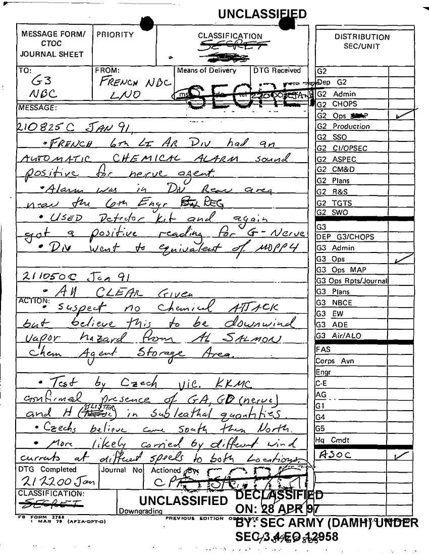 Document 1 f:/Week-64/BX000091/DAILY STAFF JOURNALS WITH MESSAGES 15 JAN-8 FEB 91/messge form chemical alarm:05099711374855