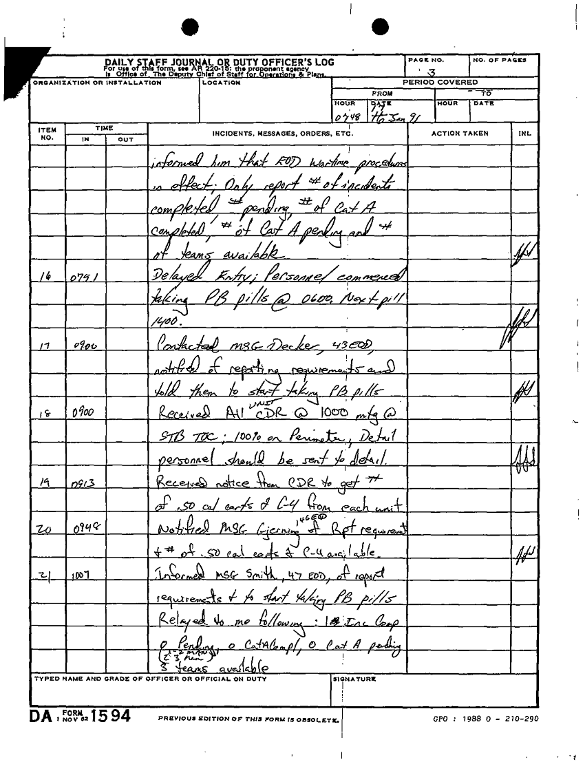 Document 2 f:/Week-64/BX000290/512TH EODCT DAILY JOURNAL AND TACTICAL OPERATIONS CENTER LOG FILES DEC 90 JAN -FEB 91/daily staff journal 512th ord det eodct 17 jan 91:05099711375759