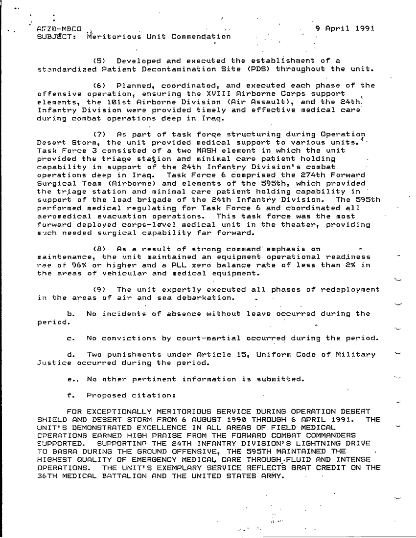 Subject = MERITORIOUS UNIT COMMENDATION 9 APR 91