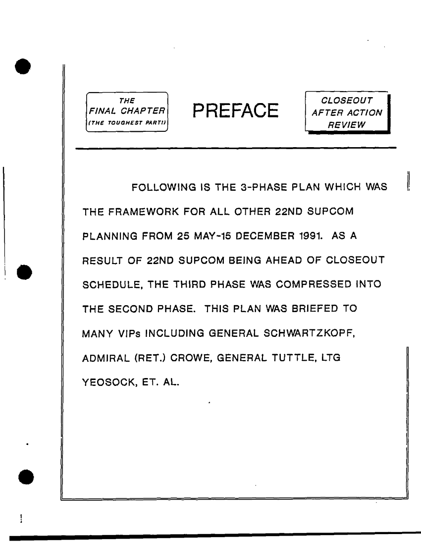 Subject = PREFACE THE FINAL CHAPTER CLOSEOUT AAR