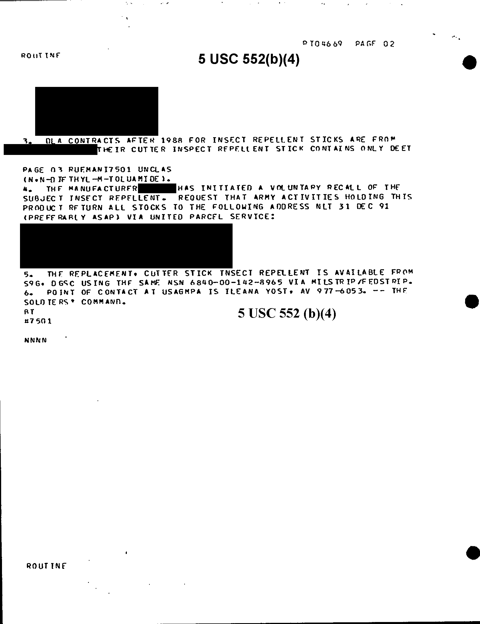 Document 2 f:/Week-65/BX001446/MISC MESSAGES OCT 91-1/epa notice on insect repellent 23 oct 91:08289707513511