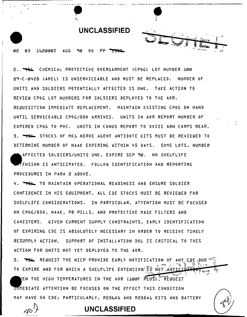 Document 10 f:/Week-64/BX000093/MISC NBC MESSAGES/unserviceable chemical defense equipment 16 aug 90:0828971656552