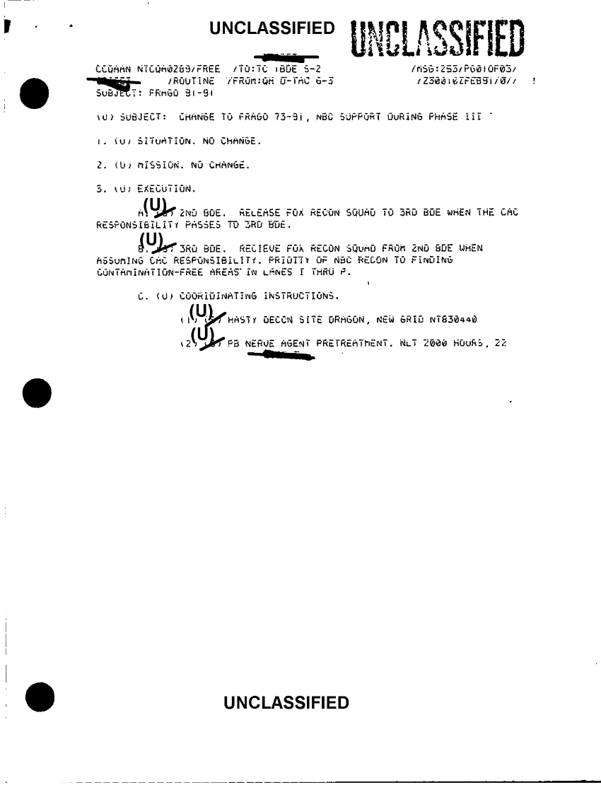 Subject = CHANGE TO FRAGO 73 91 NBC SUPPT DURING PHASE III FRAGO 91 90