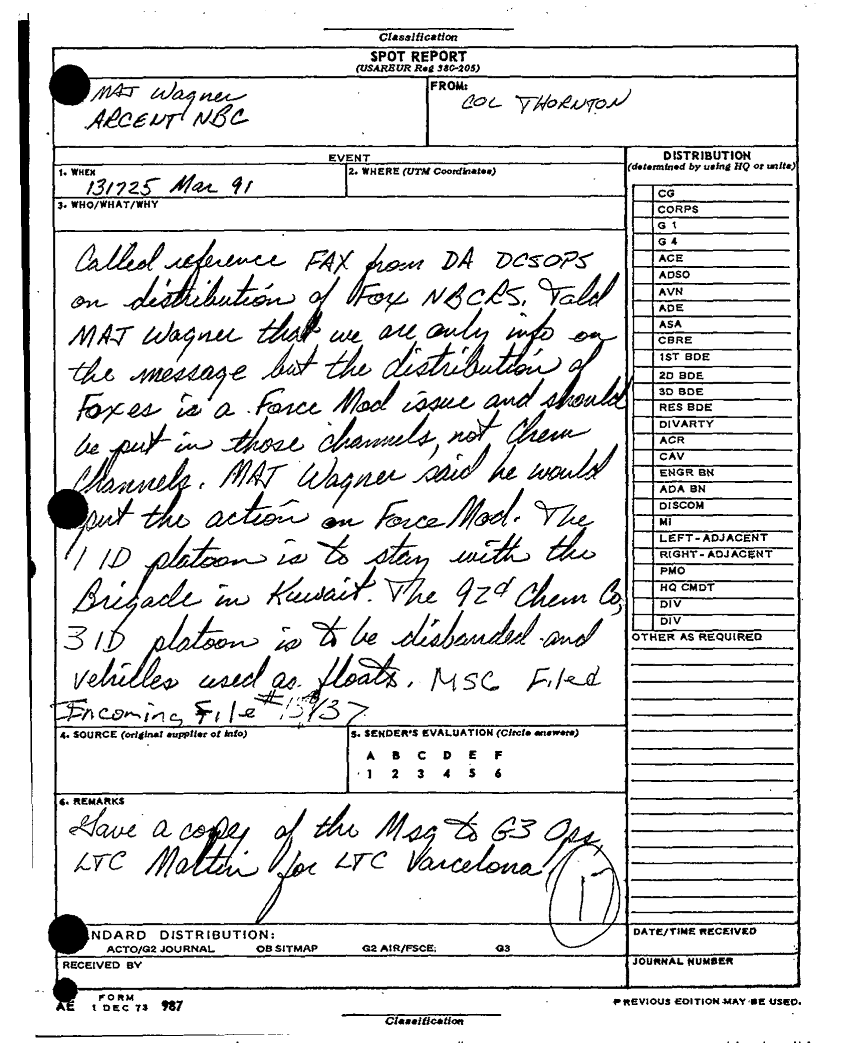 Document 19 f:/Week-25/BX000231/0007 CORPS CHEMICAL BOOK THREE-FOLDER 2 OF 2/daily staff journal or duty officers log 13 mar 91:0922971201259