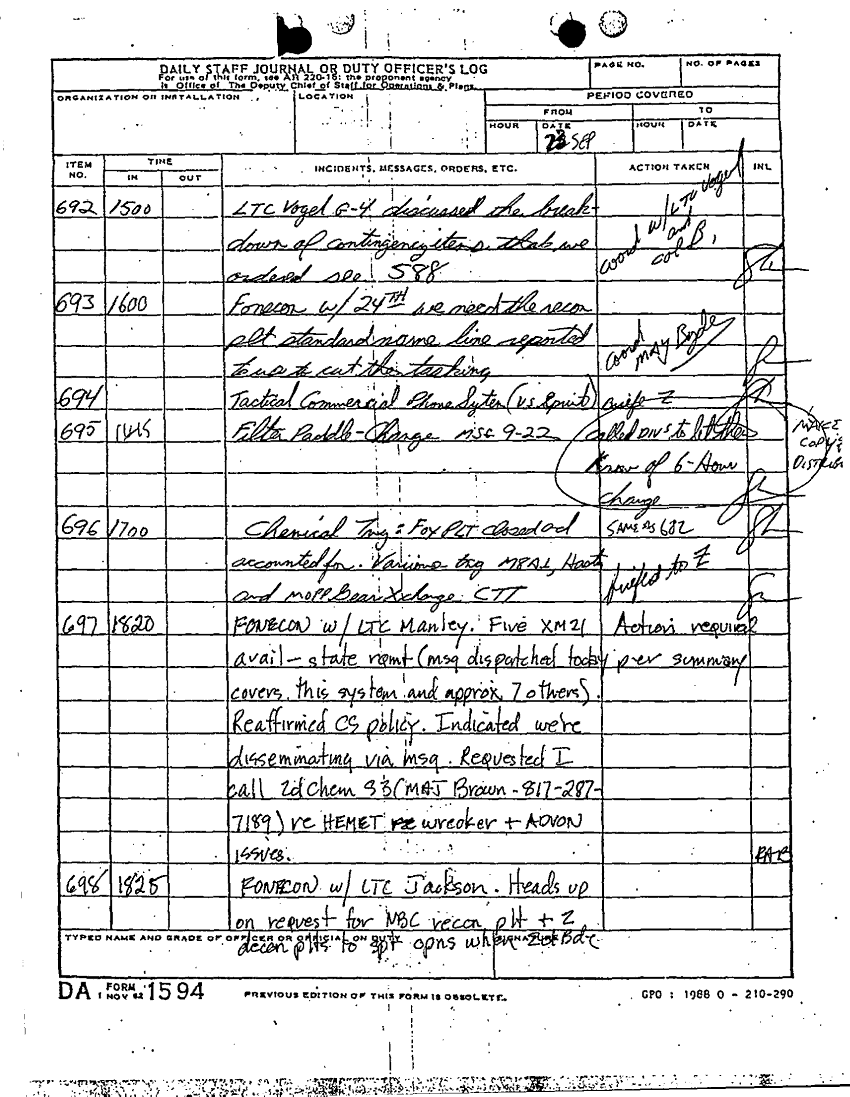 Document 36 f:/Week-64/BX000093/DAILY STAFF JOURNALS WITH MESSAGES 11 SEP-23 SEP 90/daily staff journal 10 sep:09229712012916