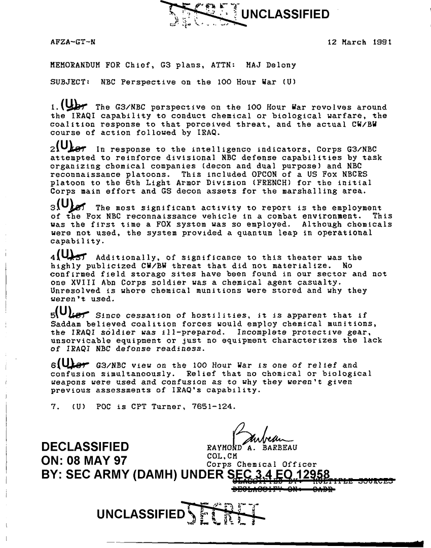 Document 1 f:/Week-64/BX000093/CHEMICAL MESSAGES SCUD INFO DOWNWIND HAZARD CHARTS/nbc preparation on the 100 hour war:0922971201234