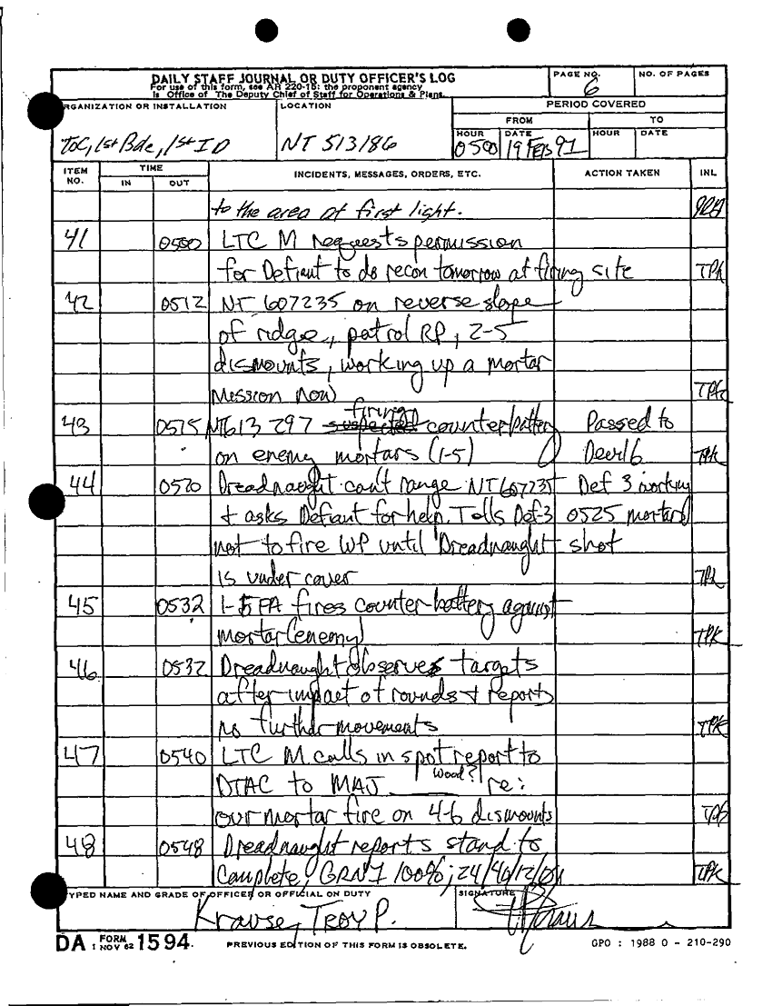 Document 30 f:/Week-60/BX001072/TOC 1ST BDE 1 ID-DAILY STAFF JOURNALS-16 FEB THRU 25 FEB 91/daily staff journal 19 feb 91:09229712012610
