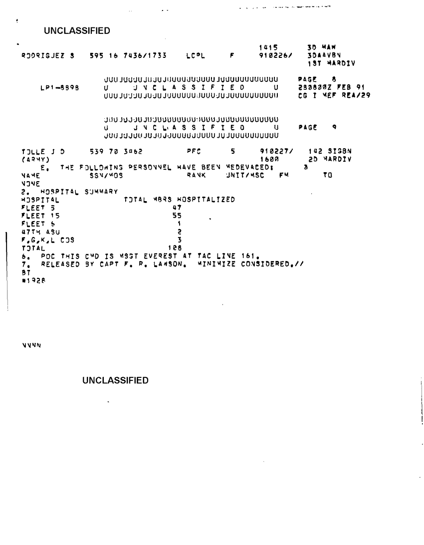 Document 5 f:/Week-39/BX303819/general medical support messages various sources feb - apr 91 cna 2077/report of hosp of i mef forces in swa 28 feb 91:11229616382310