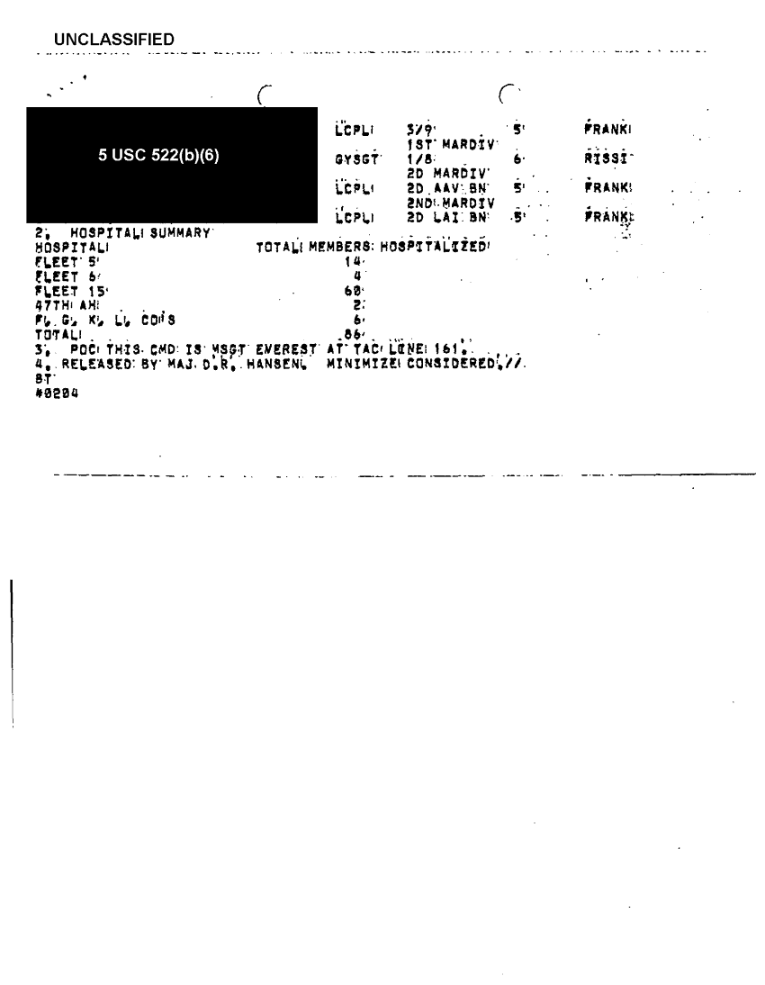 Document 8 f:/Week-39/BX303819/general medical support messages various sources feb - apr 91 cna 2077/report of hosp of i mef forces in swa 03 mar 91:11229616382311