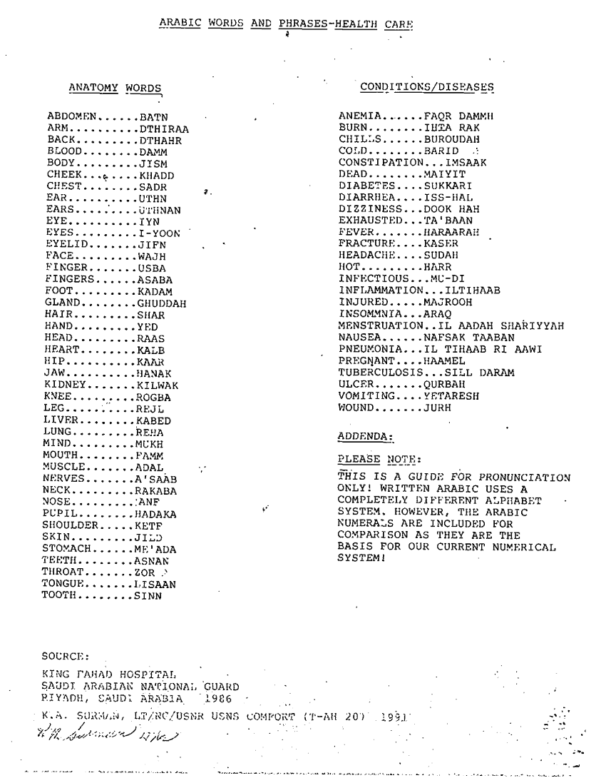 Document 8 f:/Week-43/BX303816/USNS COMFORT TAH 20 PUBLIC RELATIONS NEWS RELEASES AUG 90-APR 91/arabic words and phrases health care:11229616382614