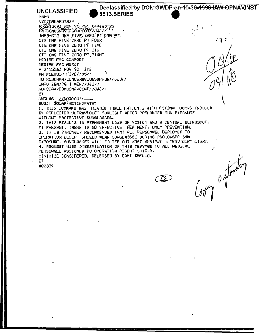 Document 1 f:/Week-38/BX303817/usns comfort tah 20 message traffic 20-28 nov 90/solar retinopathy nov 90:1112961010087