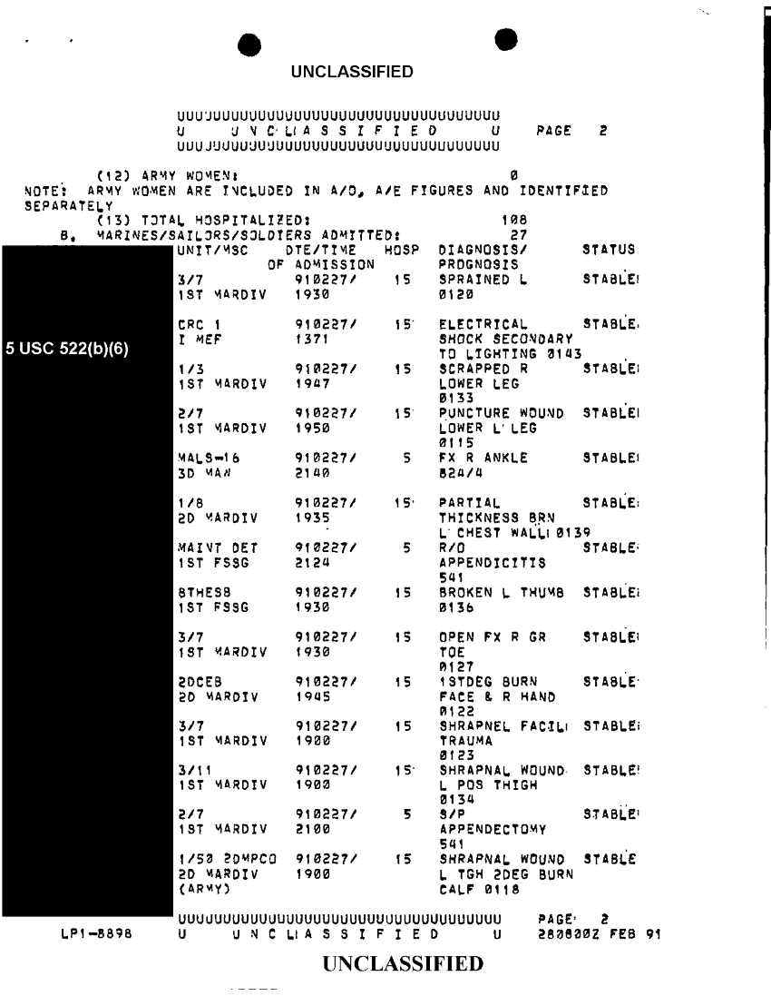 Document 9 f:/Week-39/BX303819/general medical support messages various sources feb - apr 91 cna 2077/report o hosp of i mef forces in swa 28 feb 91:12179609562513