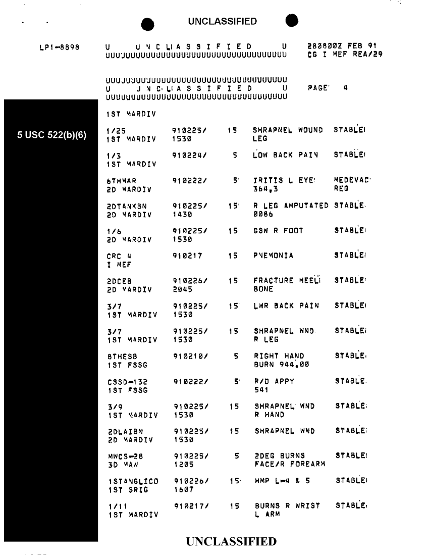 Document 9 f:/Week-39/BX303819/general medical support messages various sources feb - apr 91 cna 2077/report o hosp of i mef forces in swa 28 feb 91:12179609562513
