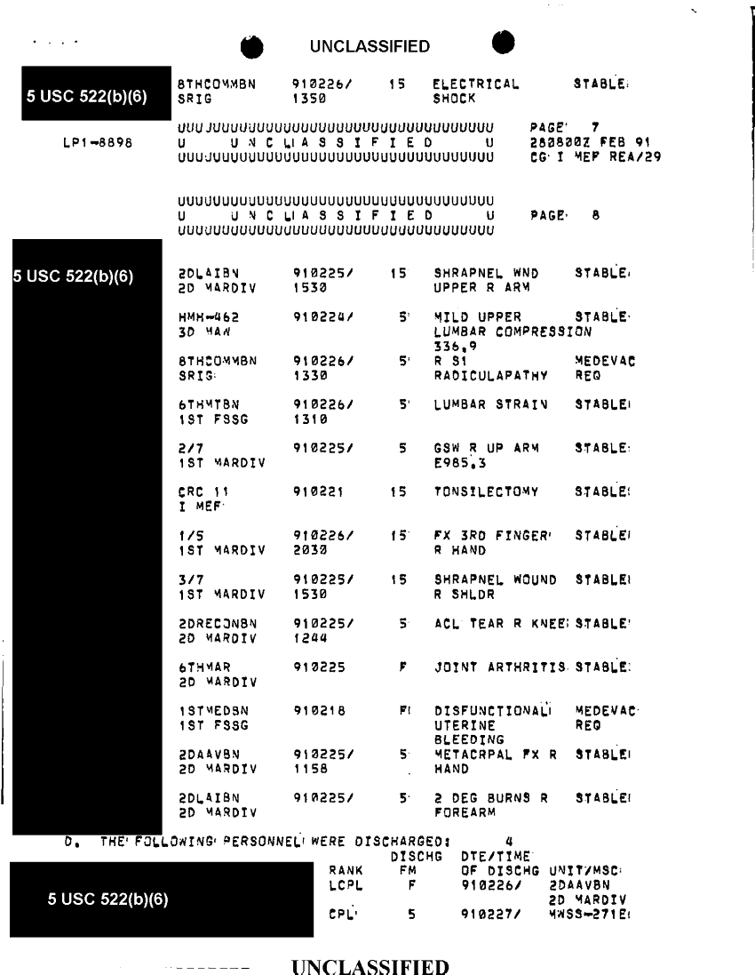 Document 9 f:/Week-39/BX303819/general medical support messages various sources feb - apr 91 cna 2077/report o hosp of i mef forces in swa 28 feb 91:12179609562513