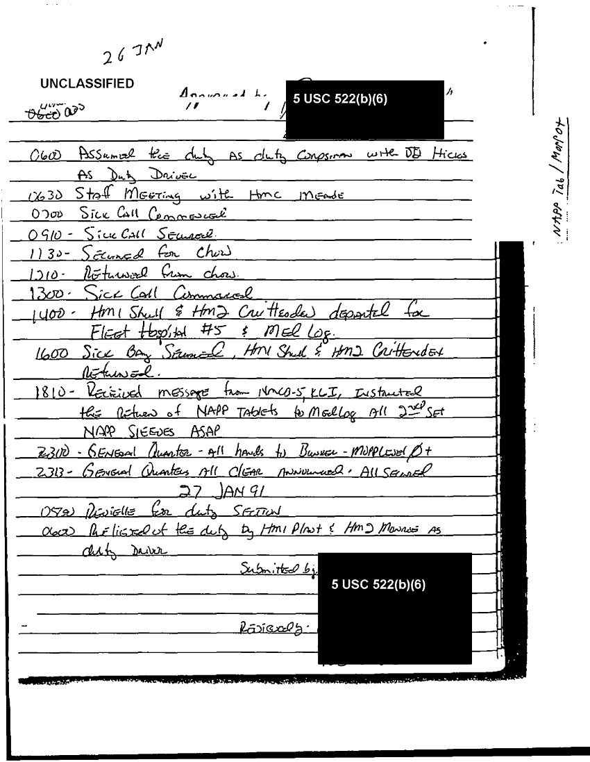 Document 122 f:/Week-37/BX303811/VARIOUS NAVAL MESSAGES FOLDER 3/nmcb 24 log record operation desert shield storm:12249609065513