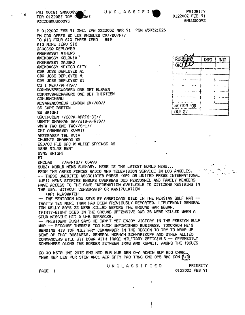 Document 3 f:/Week-44/BX303809/various naval messages folder 6 march 1991/world news summary the latest world news 1 mar:12249609070023