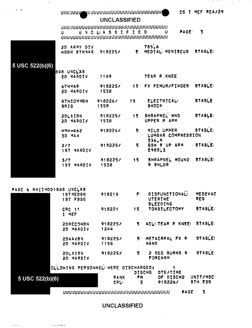 Document 10 f:/Week-39/BX303819/general medical support messages various sources feb - apr 91 cna 2077/report of hosp of i mef forces in swa 27 feb 91:1224960906516