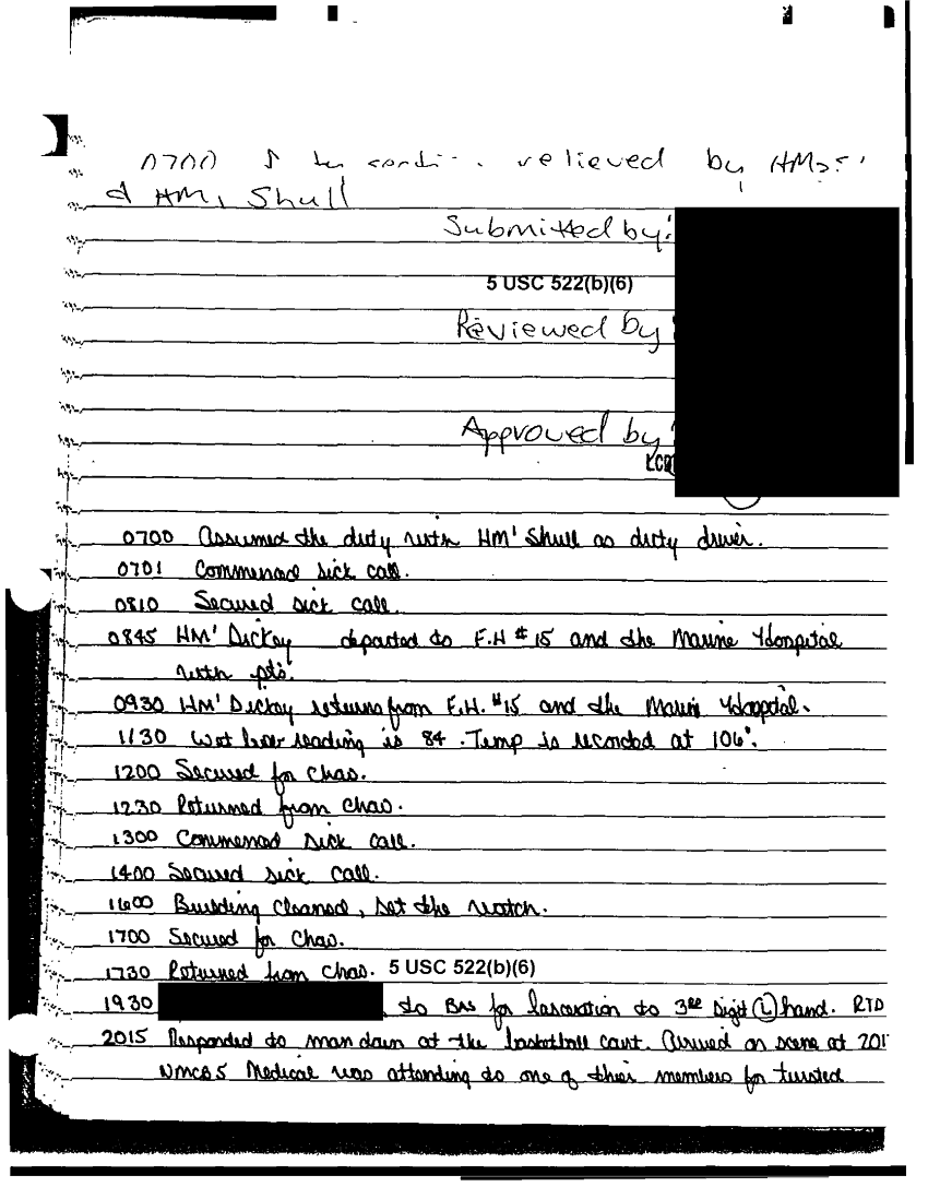 Document 11 f:/Week-37/BX303811/VARIOUS NAVAL MESSAGES FOLDER 4/various journal entries sick call 22 mar 91:03249710420113