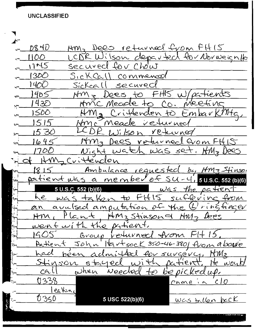 Document 11 f:/Week-37/BX303811/VARIOUS NAVAL MESSAGES FOLDER 4/various journal entries sick call 22 mar 91:03249710420113