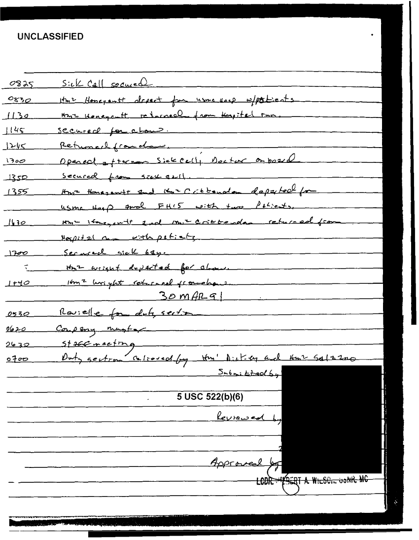 Document 49 f:/Week-37/BX303811/VARIOUS NAVAL MESSAGES FOLDER 4/various journal entries sick call 22 mar 91:0324971041562