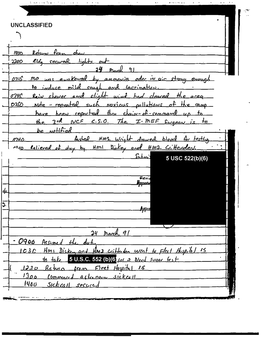 Document 49 f:/Week-37/BX303811/VARIOUS NAVAL MESSAGES FOLDER 4/various journal entries sick call 22 mar 91:0324971041562