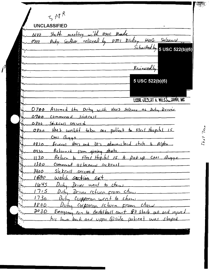 Document 49 f:/Week-37/BX303811/VARIOUS NAVAL MESSAGES FOLDER 4/various journal entries sick call 22 mar 91:0324971041562