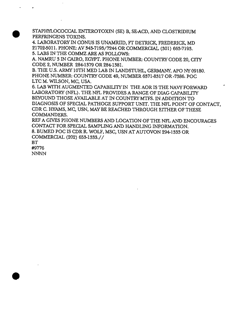 Document 2 f:/Week-39/BX303819/DESERT SHIELD-STORM CHEMICAL AND BIOLOGICAL MESSAGES CNA 57-60890/navy forward lab bumed wash dc 28 nov 90:0324971041563
