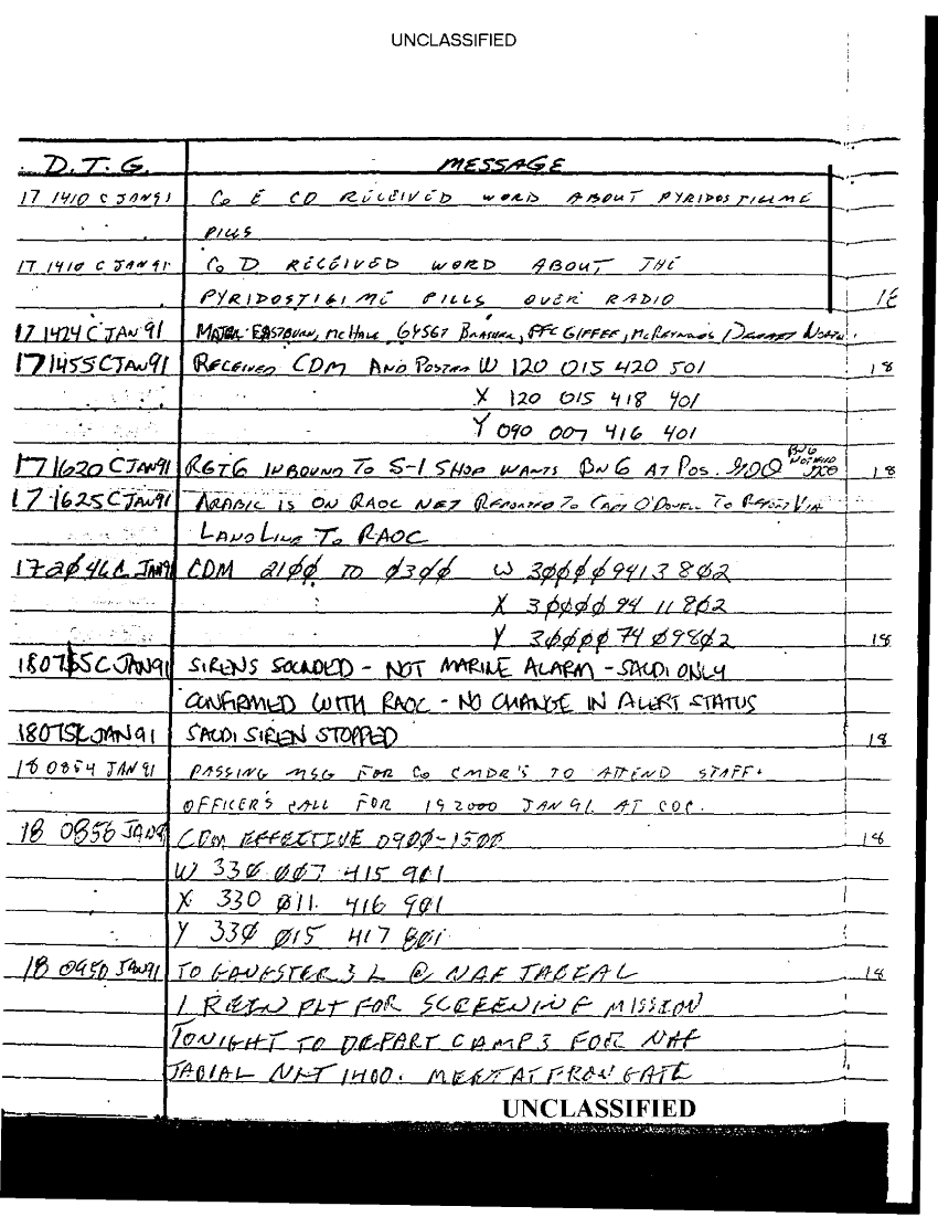 Document 67 f:/Week-35/BX600013/COMMAND CHRONOLOGY 2ND BATTALION 24TH MARINES JAN - MAR 1991 2 OF 2/statement reference s 3 logs 9 jan 1991:0913961614048