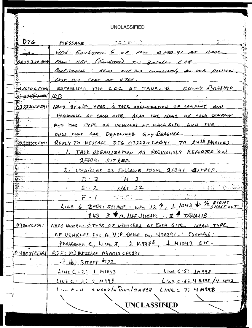 Document 67 f:/Week-35/BX600013/COMMAND CHRONOLOGY 2ND BATTALION 24TH MARINES JAN - MAR 1991 2 OF 2/statement reference s 3 logs 9 jan 1991:0913961614048