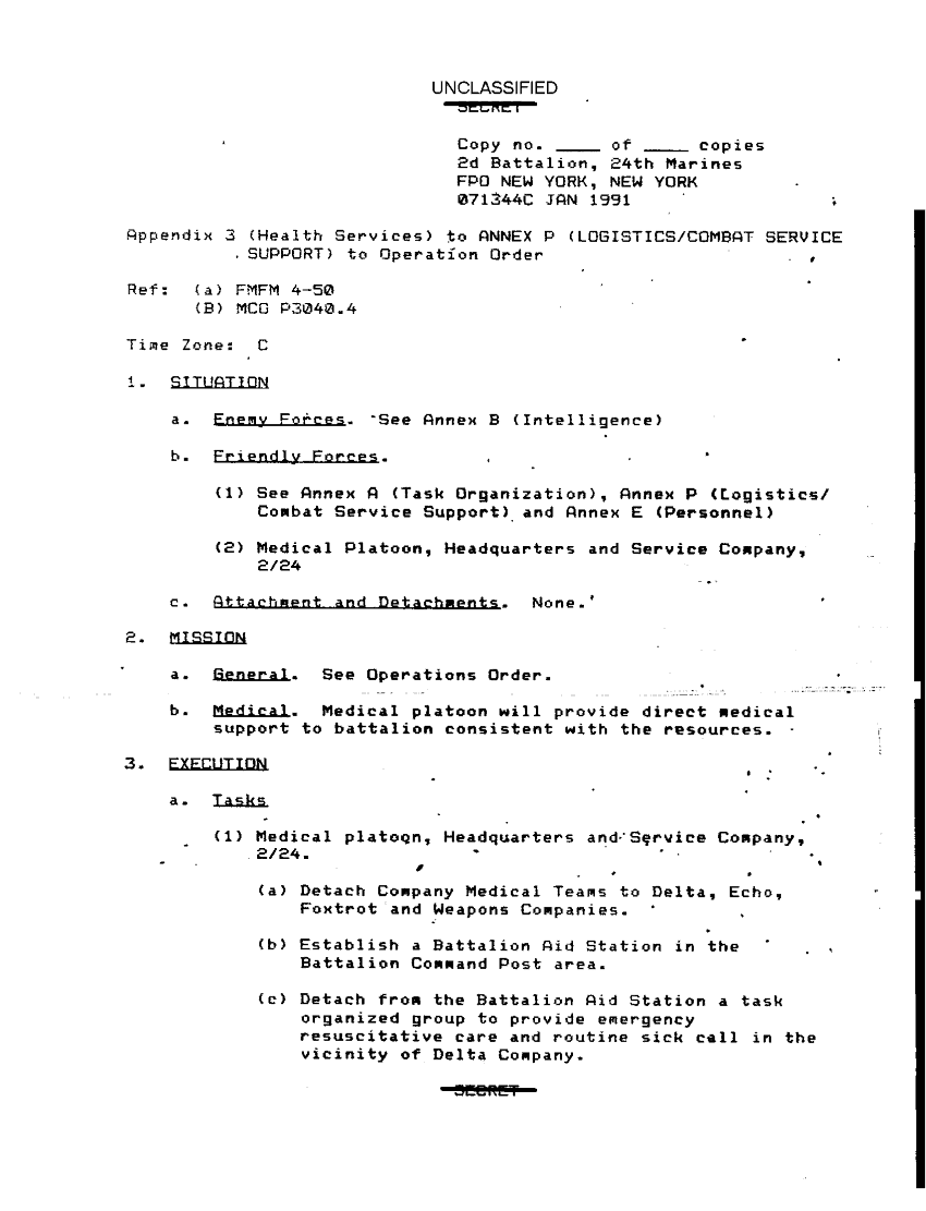 Document 6 f:/Week-35/BX600013/COMMAND CHRONOLOGY 2ND BATTALION 24TH MARINES JAN - MAR 1991 2 OF 2/annex p combat service support to opord 1 91 071:09139616141111
