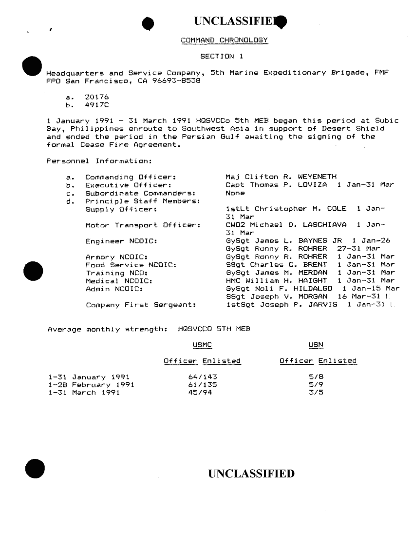 Document 6 f:/Week-34/BX600006/COMMAND CHRONOLOGY 5TH MARINE EXPEDITIONARY BRIGADE 1 JAN - 17 MAR 1991/command chronology for the period 1 jan 31 mar 1:0906961537226